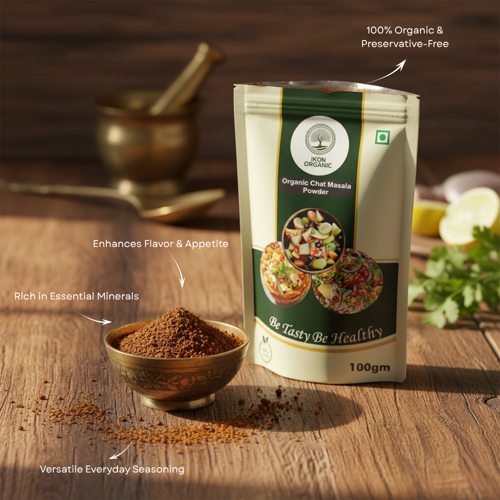 Every pinch of IKON Organic Chat Masala delivers pure taste, vibrant aroma, and authentic Indian tang, turning everyday snacks into flavorful delights.