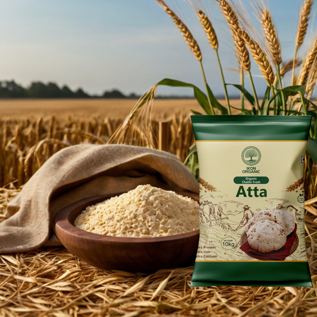 Introducing IKON Organic Chakki Fresh Atta, the perfect choice for health-conscious families seeking both taste and nourishment.