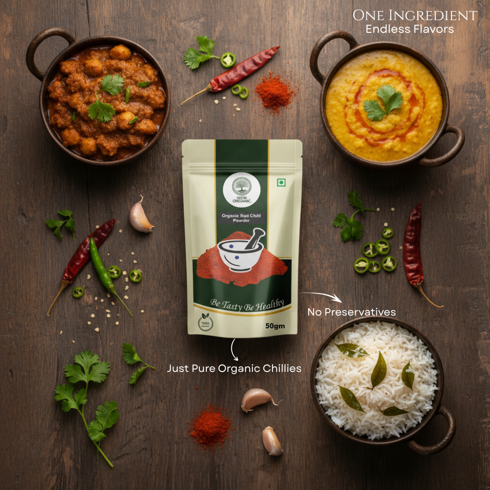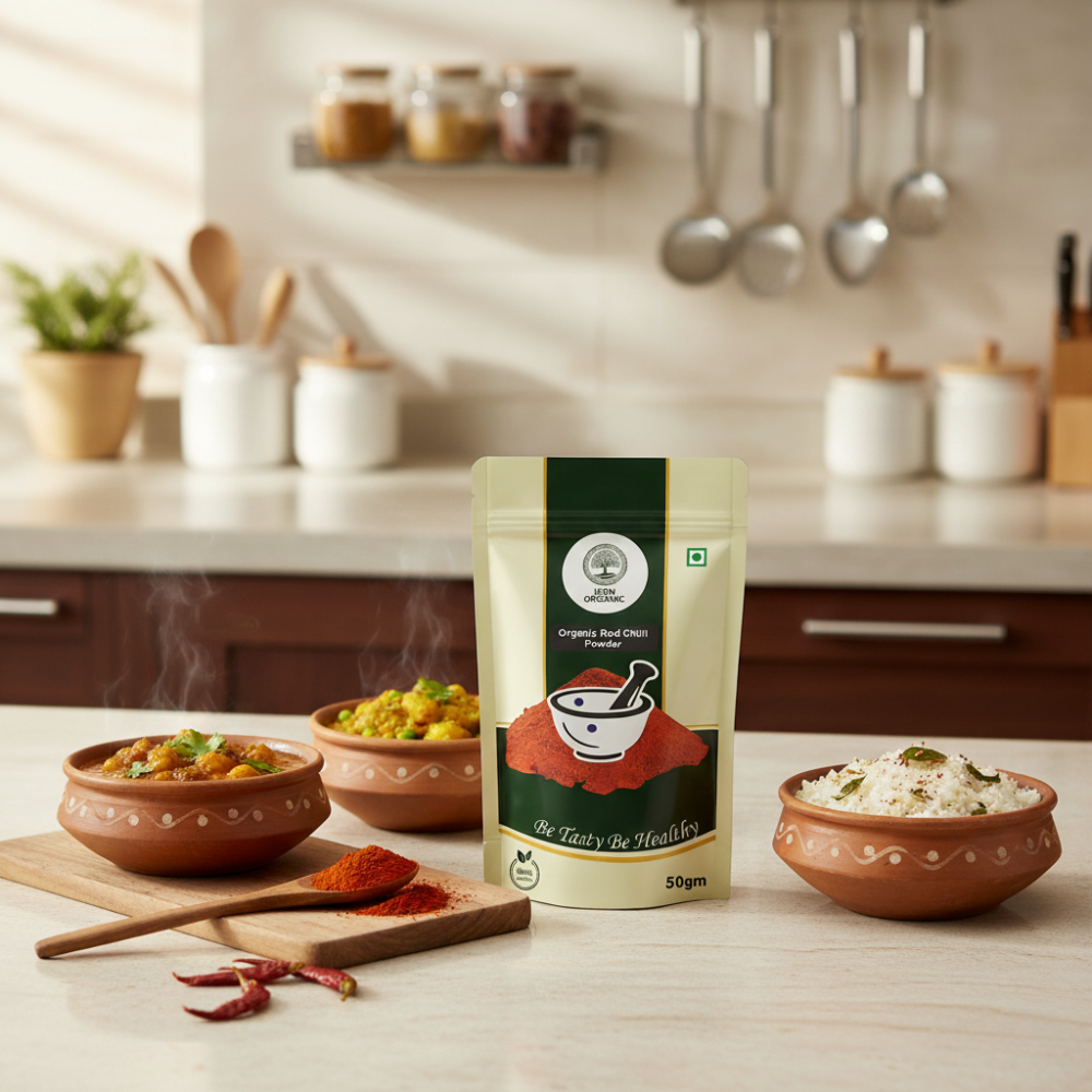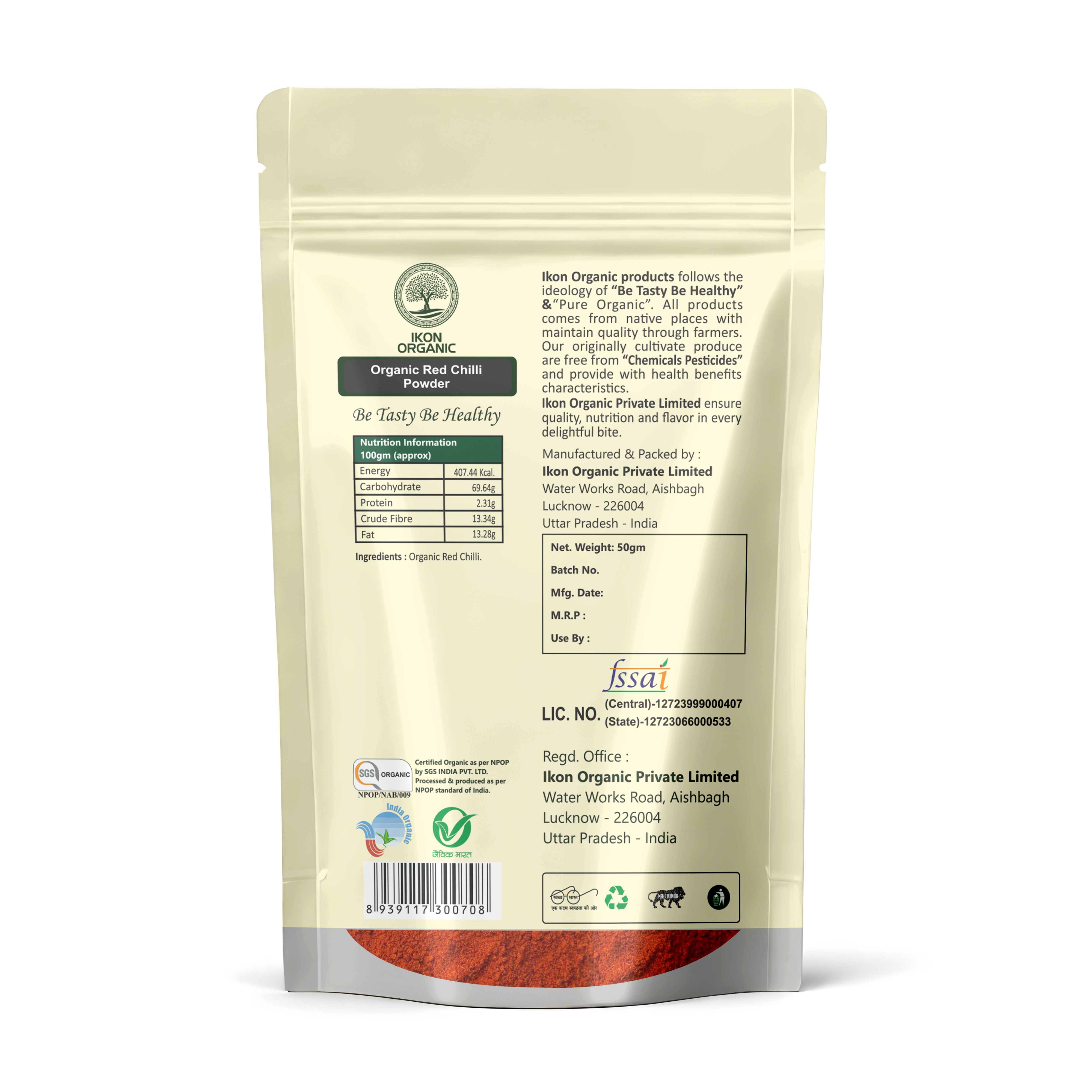 Turn up the heat in your kitchen with IKON Organic Red Chilli Powder, finely ground from farm-fresh, sun-dried red chillies grown naturally without chemicals.