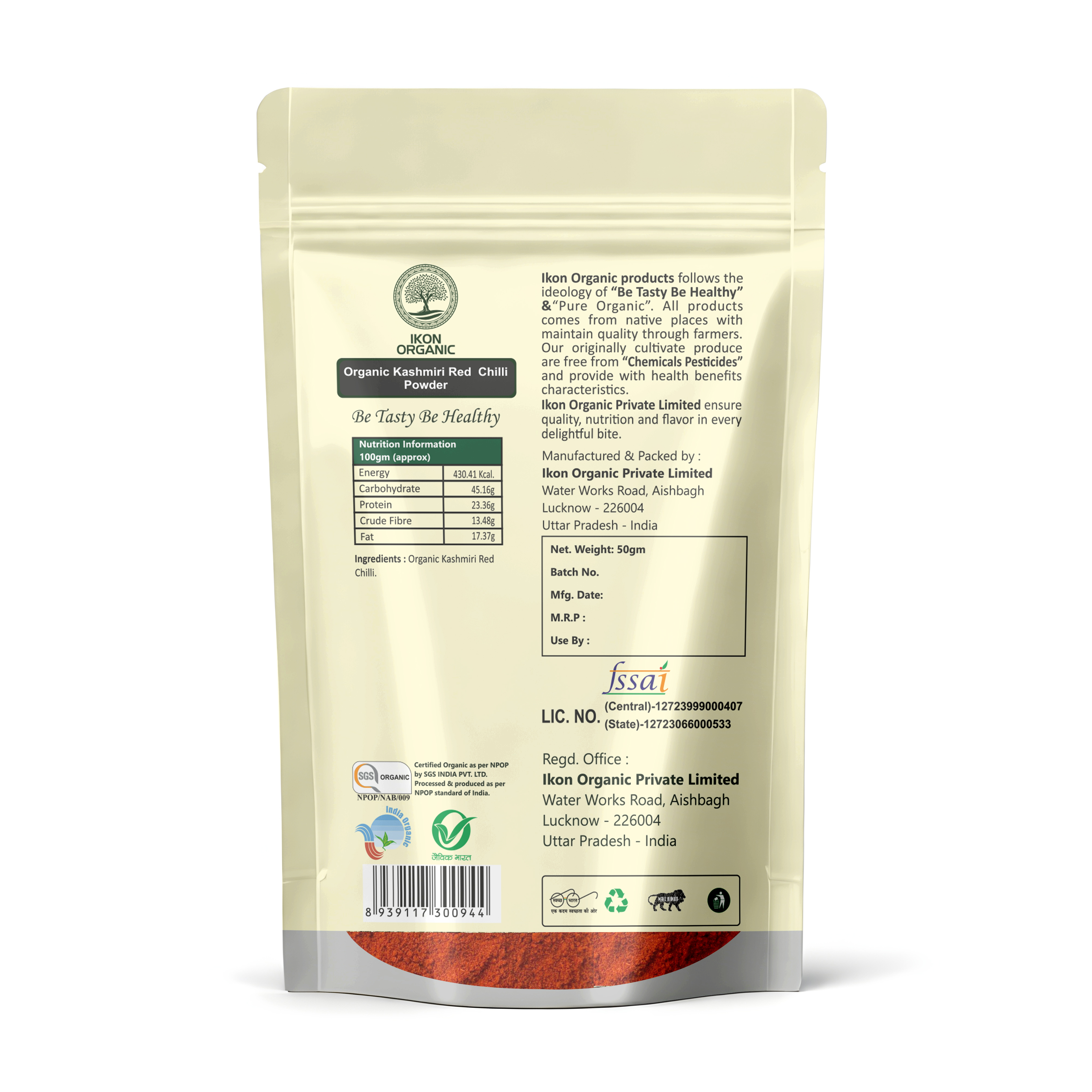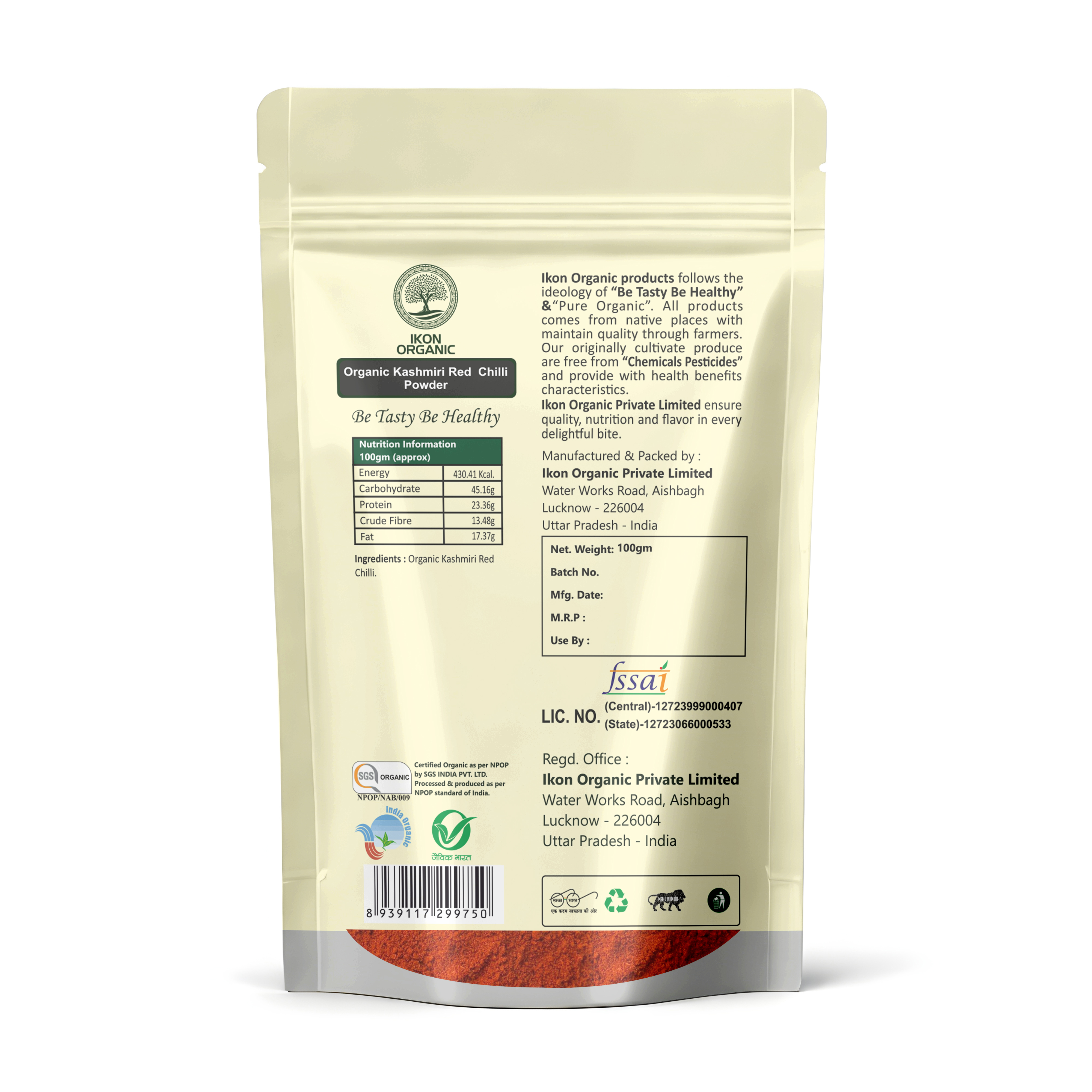 Add the perfect balance of color, taste, and aroma to your dishes with IKON Organic Kashmiri Red Chilli Powder, a must-have spice for every Indian kitchen.
