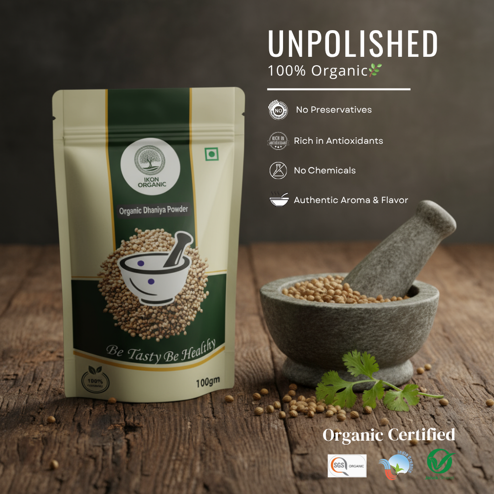 Bring home the true essence of Indian cooking with IKON Organic Coriander Powder, sourced directly from trusted organic farms across India.